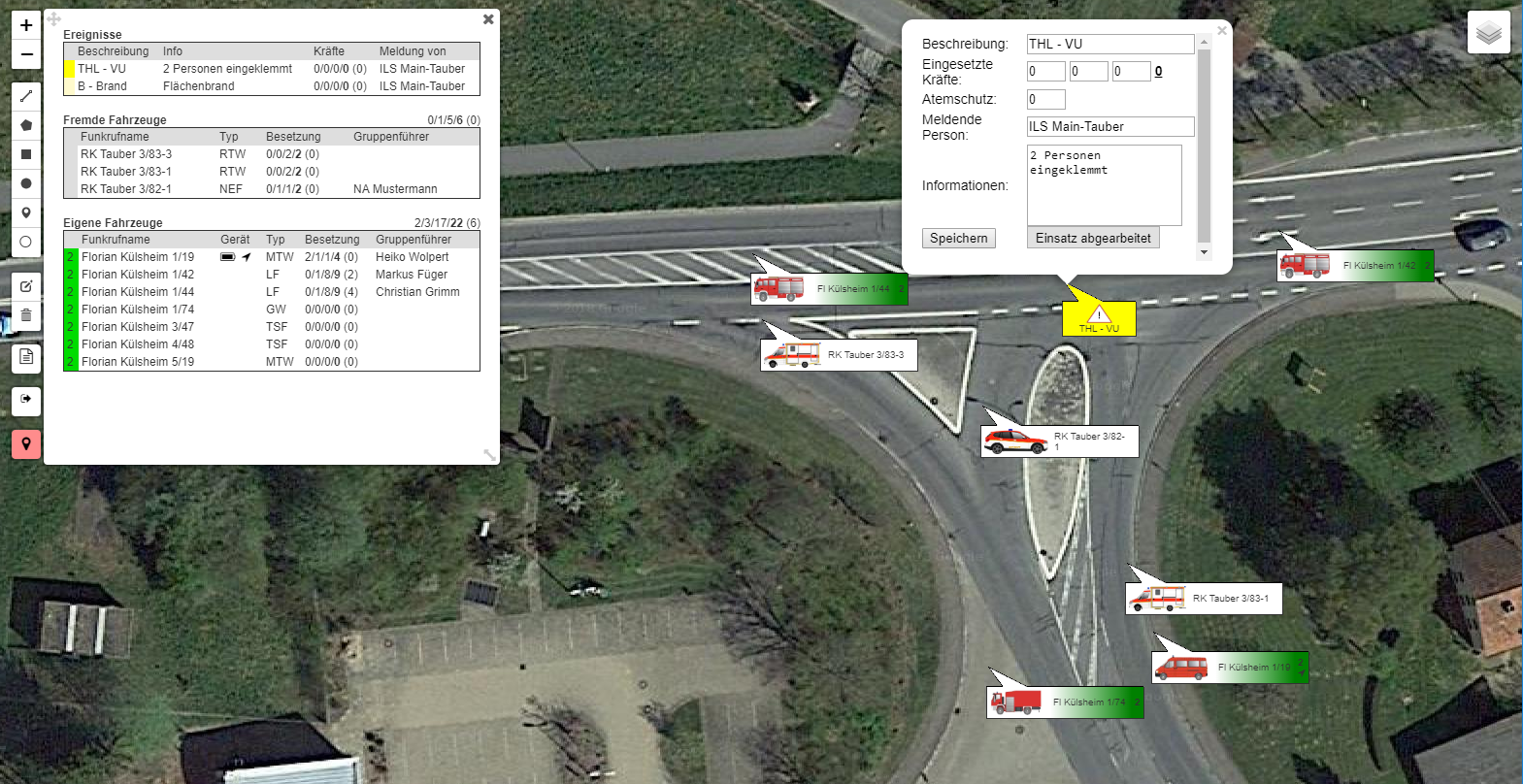 Der Lagekartenführer kann die restlichen Daten erfassen und sowohl er als auch alle anderen Nutzer haben automatisch eine Kräfteübersicht mit eigenen und fremden Kräften.